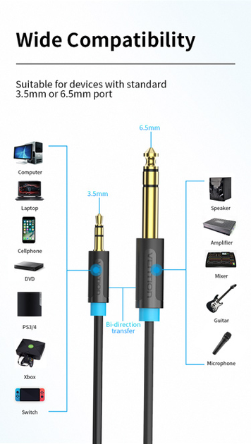—BABBH Кабель 3.5mm TRS Male to 6.35mm Male Audio Cable 2M Black