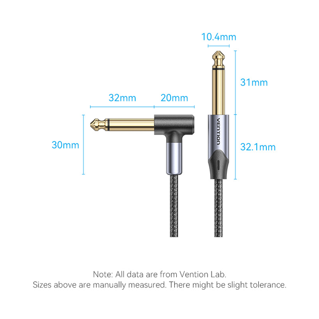 —BKEHG Кабель Cotton Braided 6.35mm TS Male to Male Right Angle Audio Cable 1.5M Gray Aluminum Alloy