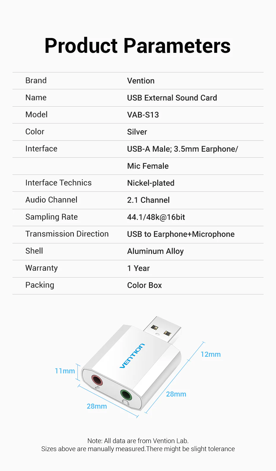 —VAB-S13 Звуковая карта USB Vention External Sound Card Silvery Metal Type