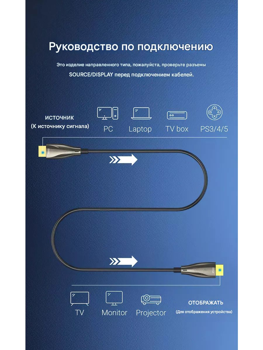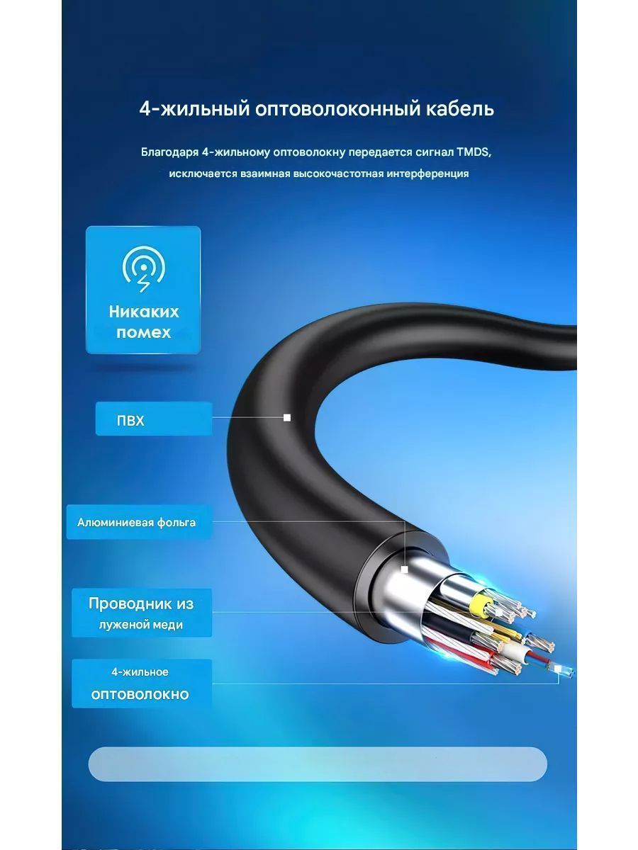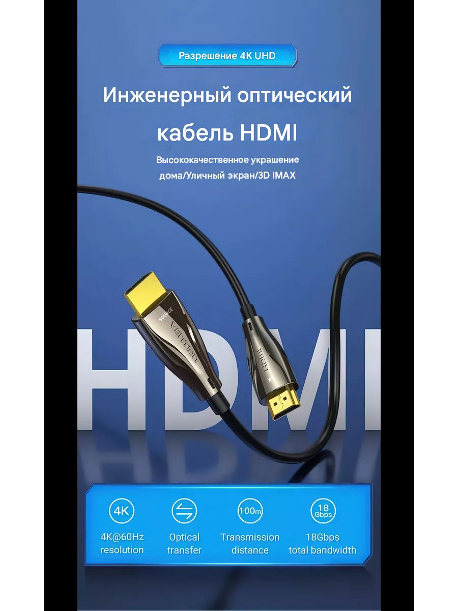 —ALABX Кабель оптический Vention HDMI v2.0 4K 60Hz, 50м, цвет: черный