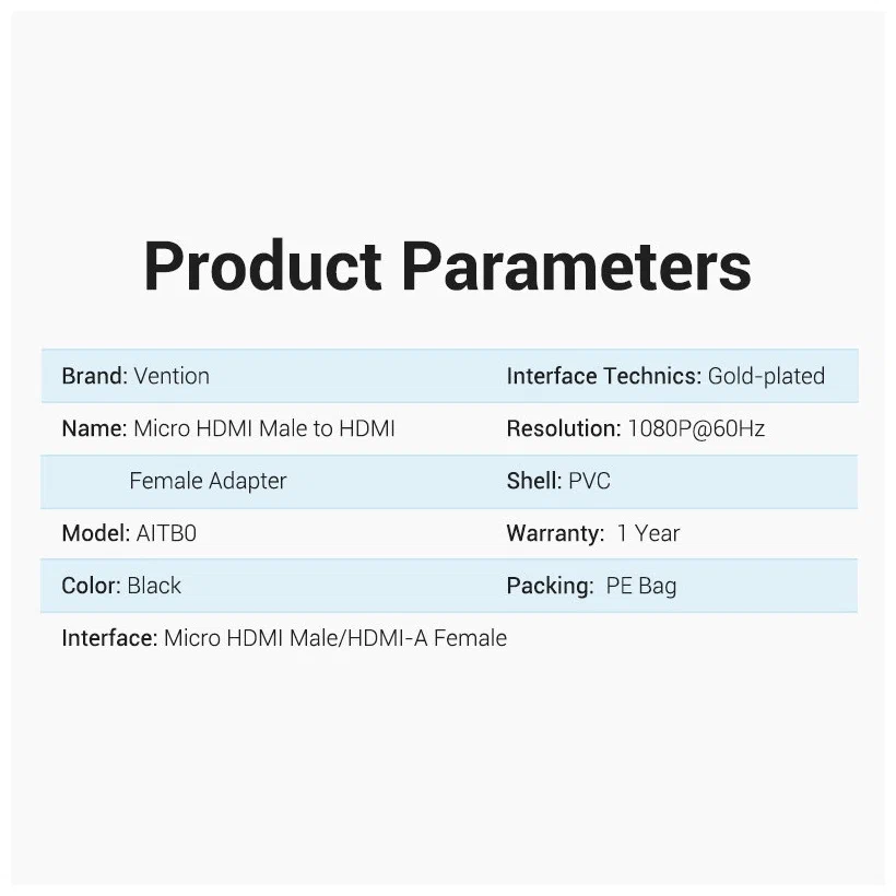AITB0 Micro HDMI Male to HDMI Female Adapter Black