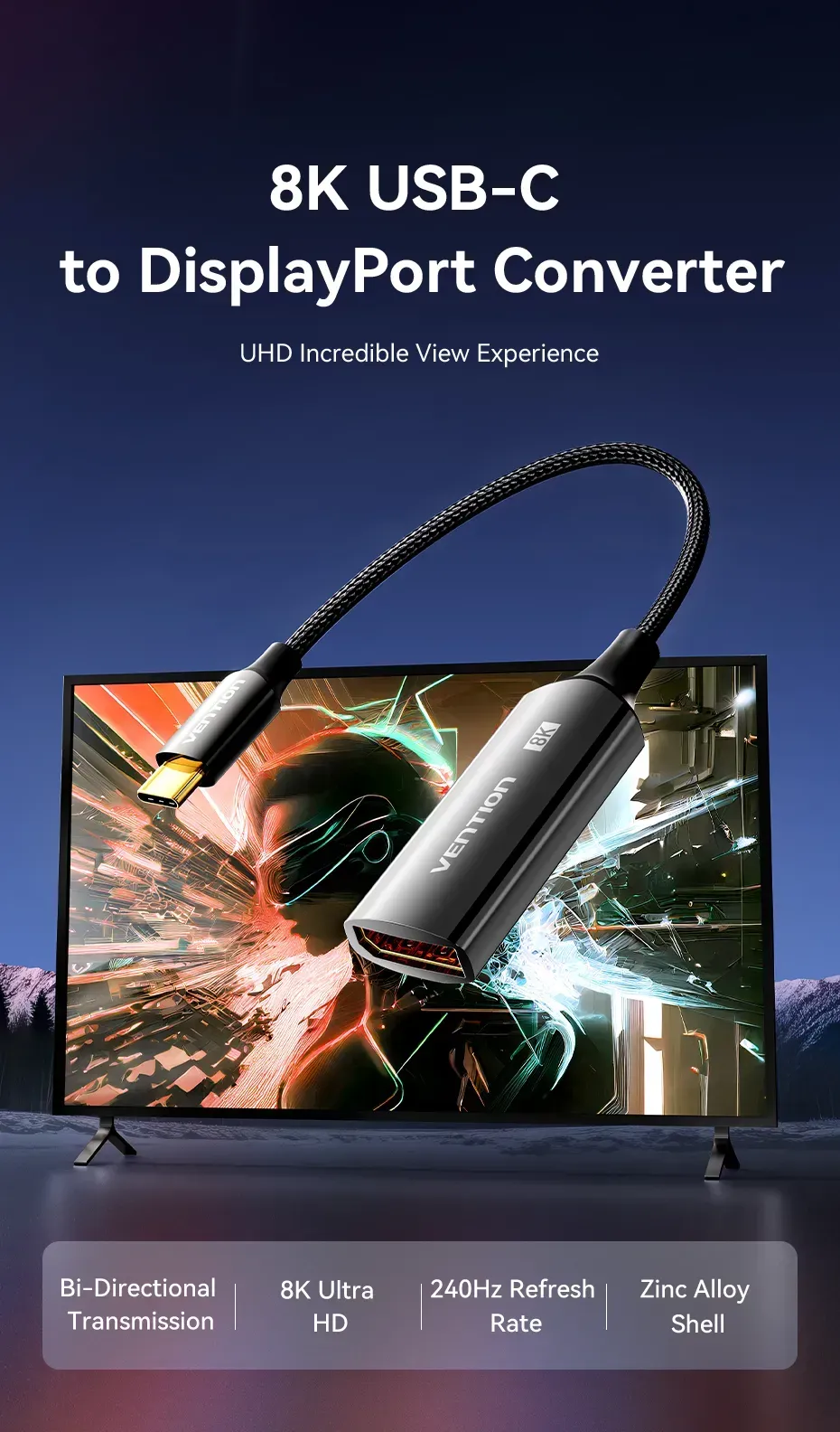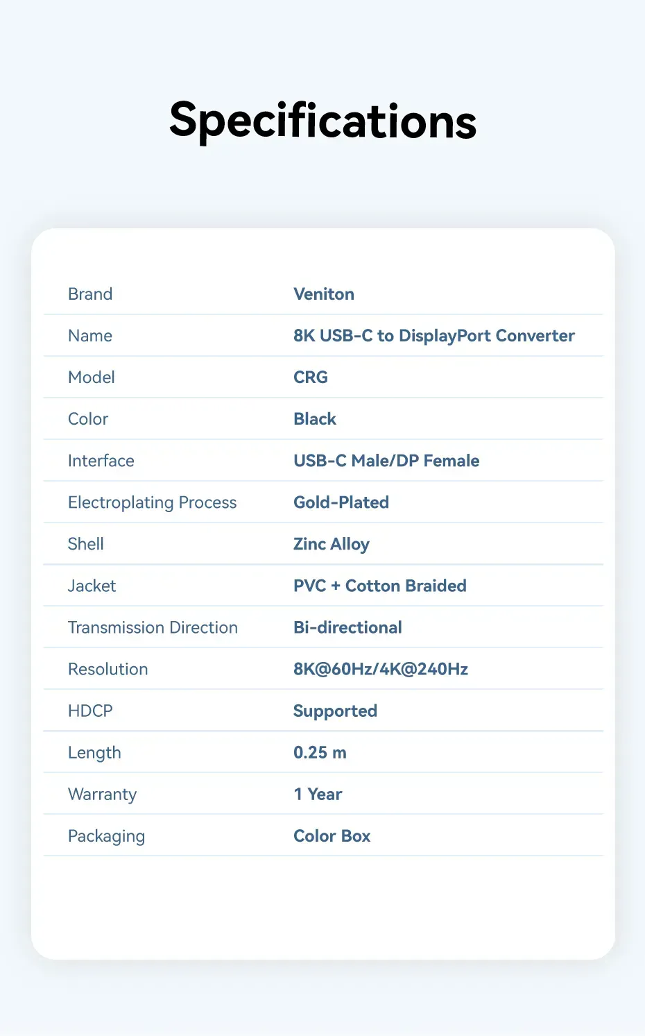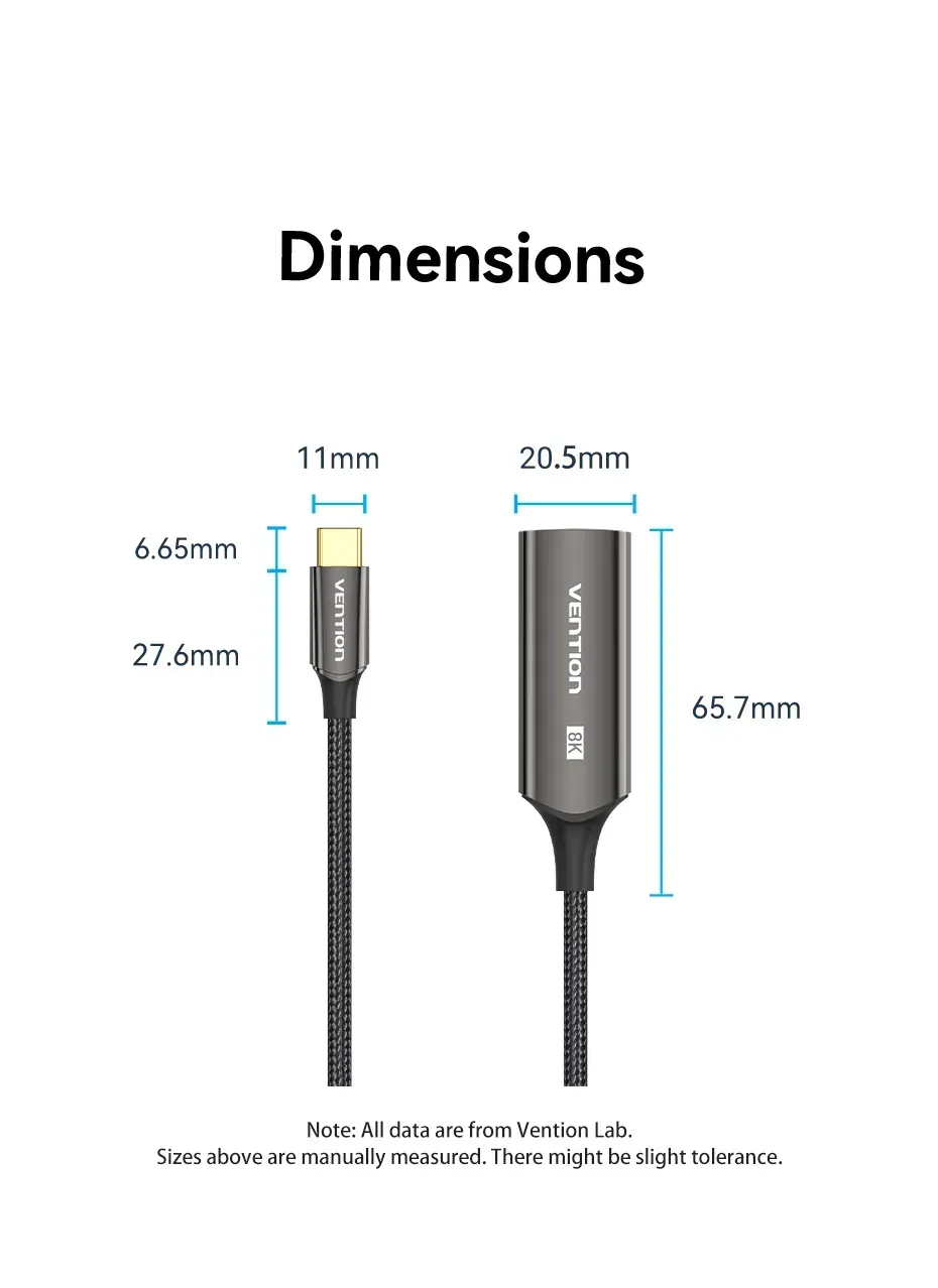 —CRGBC Конвертер Cotton Braided USB-C to DP 8K Vention 0.25M Black