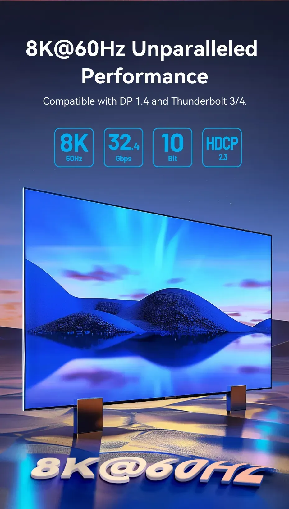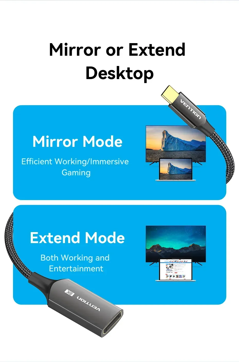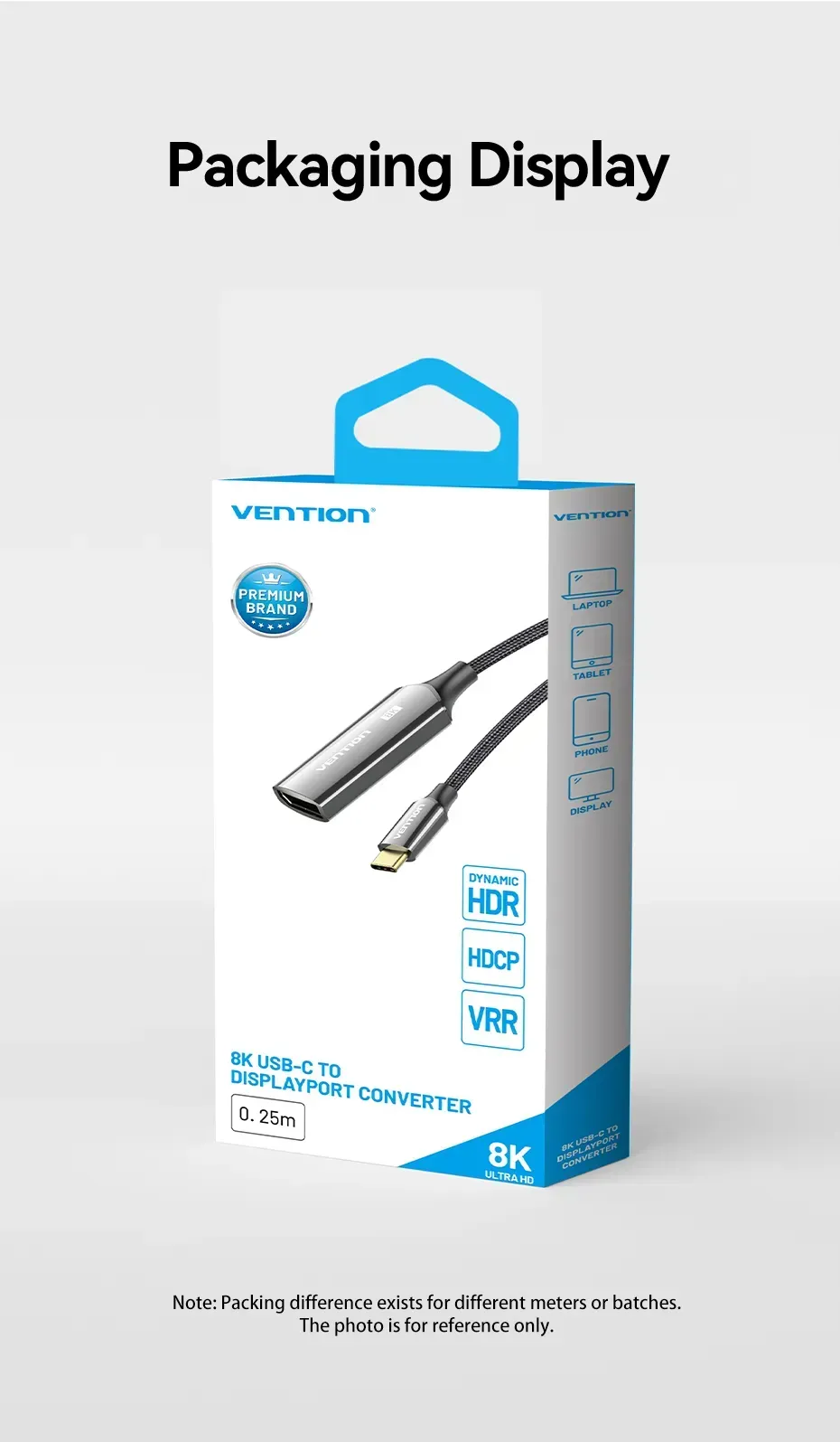 —CRGBC Конвертер Cotton Braided USB-C to DP 8K Vention 0.25M Black