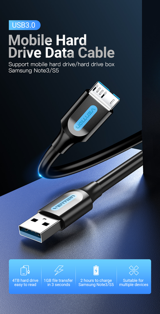 COPBD Кабель USB A - USB Micro B (папа-папа) Vention, 0.5M черный