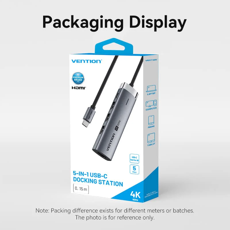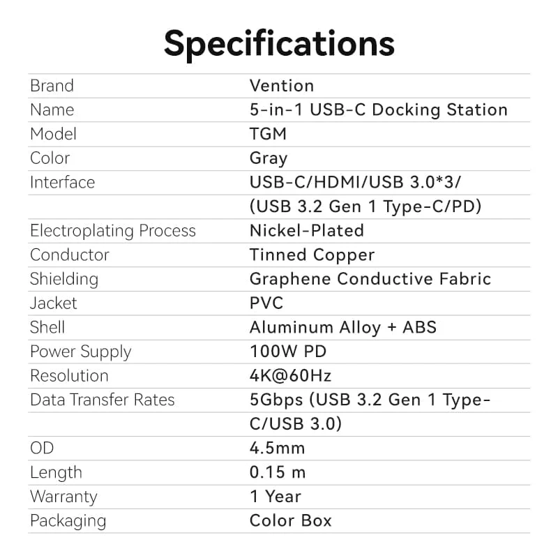 —TGMHB USB-C to HDMI/USB 3.0*3/USB 3.2 Gen 1 Type-C/PD Docking Station 0.15M Gray Aluminum Alloy Type