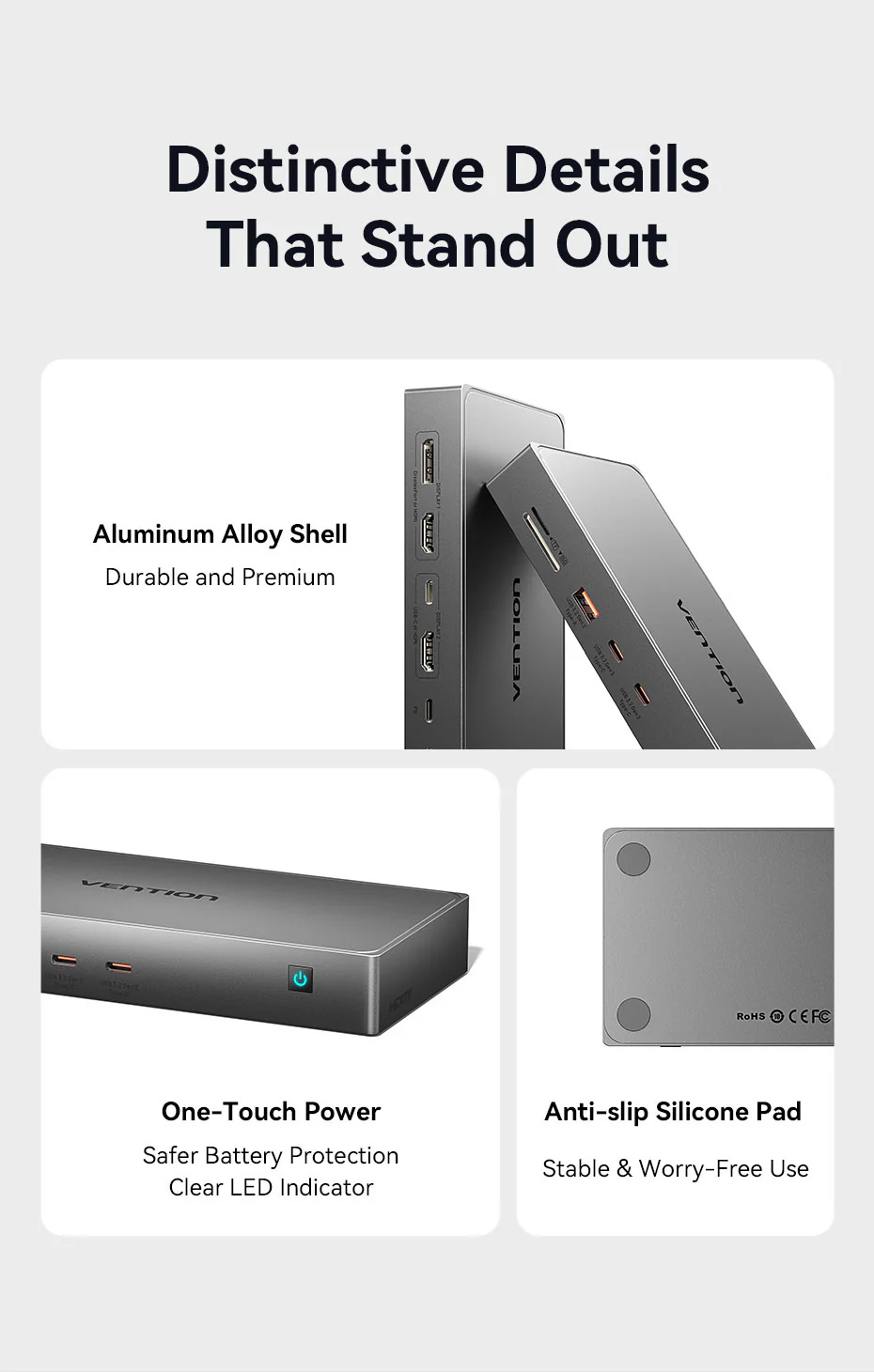 TPWH0 Док-станция USB-C - USB-A 3.2, 2xUSB-C 3.2, 2xHDMI v2.0 4K 60Hz, DP 4K 60Hz, USB-C 4K 60Hz, LAN 1Gbit, SD/TF, PD 100W