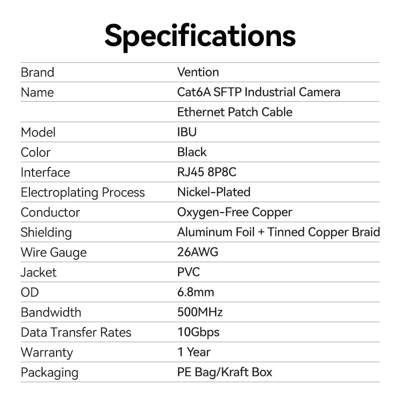 —IBUBH Ultra-Flexible Cat6A SFTP Industrial Camera Ethernet Patch Cable 2M Black