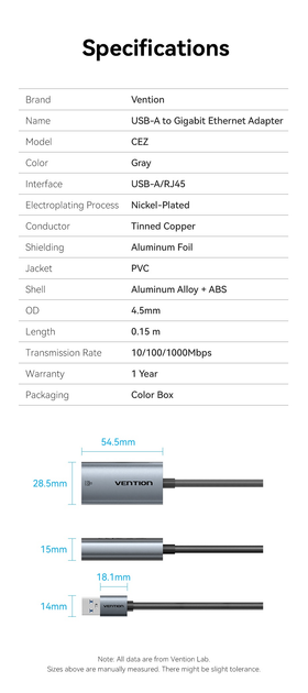 —CEZHB Сетевой адаптер USB-A 3.0 - LAN 1Gbit, длина 0.15м, Цвет - серый