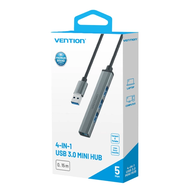 CKPHB USB-хаб Vention USB-4x USB 3.0 5 Гбит/с USB-A металлический 0.15 м серый