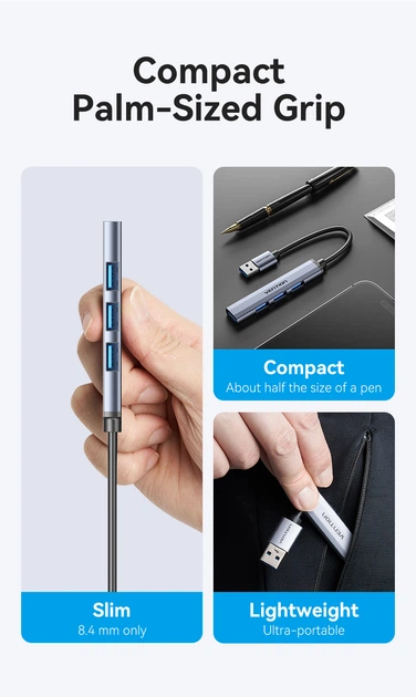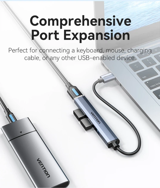 —CKPHB USB-хаб Vention USB-4x USB 3.0 5 Гбит/с USB-A металлический 0.15 м серый